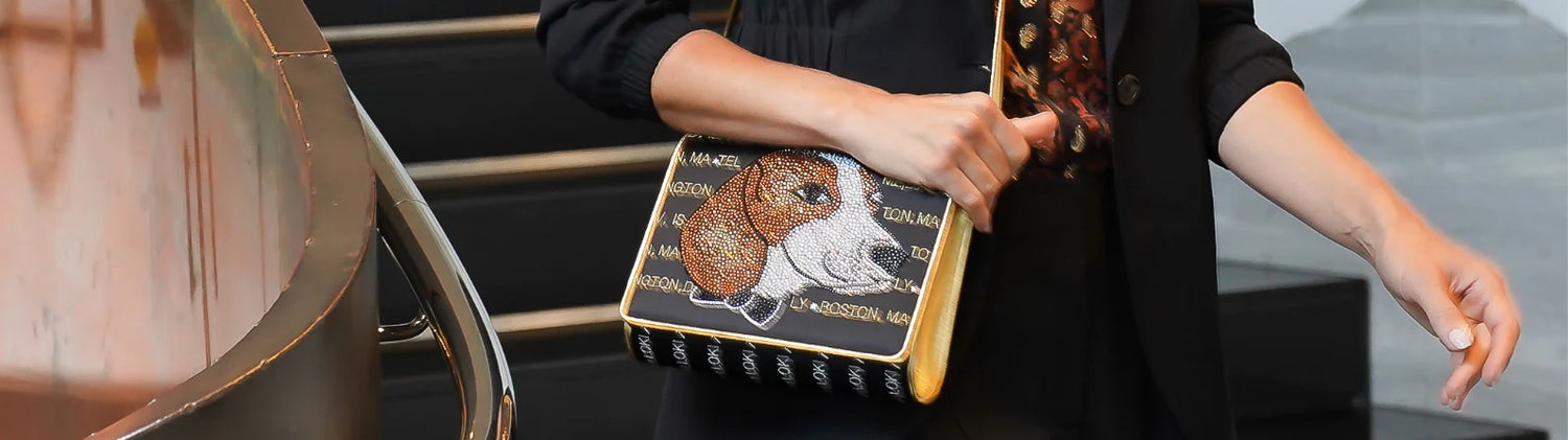 A wedding, special birthday, or anniversary is a momentous life experience that deserves not only a special dress, but also distinctive accessories. Sharon’s bespoke handbag creations can include the use of the bride’s wedding gown lace or fabric, or capture a special scene, person or pet in fabulous embroidery and European crystal.