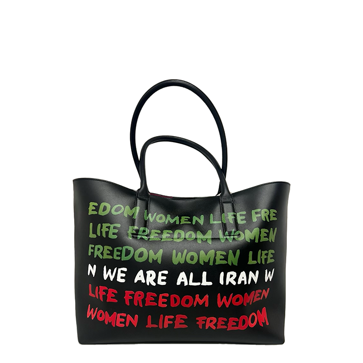 The Freedom tote is made of Italian calfskin that is produced in the most environmentally protective way. The tote has strong rolled handles to either be held or placed on one’s shoulder. It is beautifully printed in a manner that integrates with the leather and allows the leather to keep its supple hand. The tote can hold a lap top or iPad and has a separate zip pocket with Sharon’s signature brass poodle pull. It is fully lined in beautiful hot pink suede which is bonded to the leather making it durable but soft.