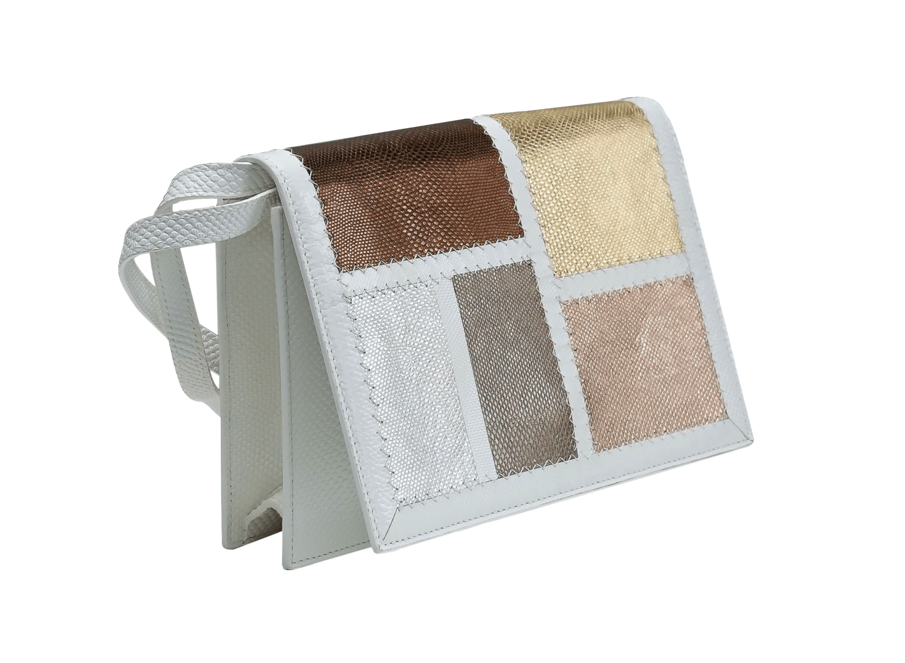 -Metallic patchwork and white non-endangered Karung, hot pink lambskin suede